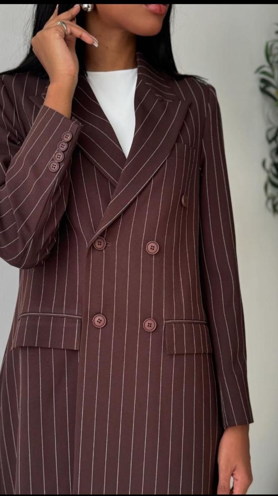 عبايه بليزر مبطن بقماش مخطط مع طرحه بنفس اللون