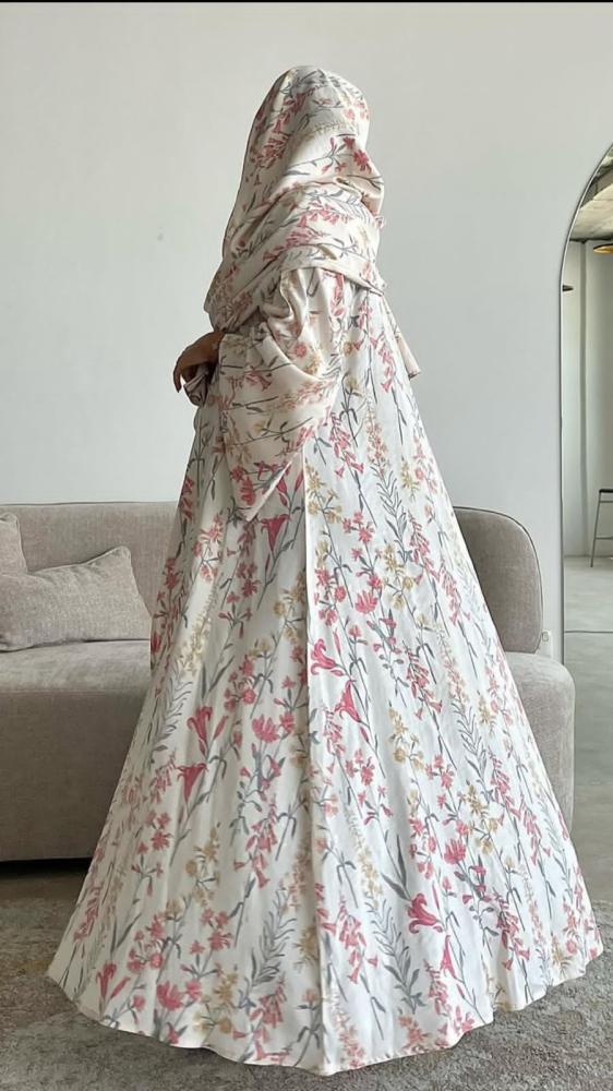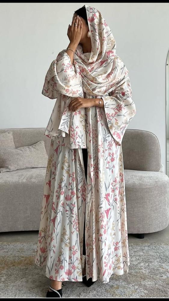 عبايه قطن هندي مشجر مع طرحه من نفس الخامه